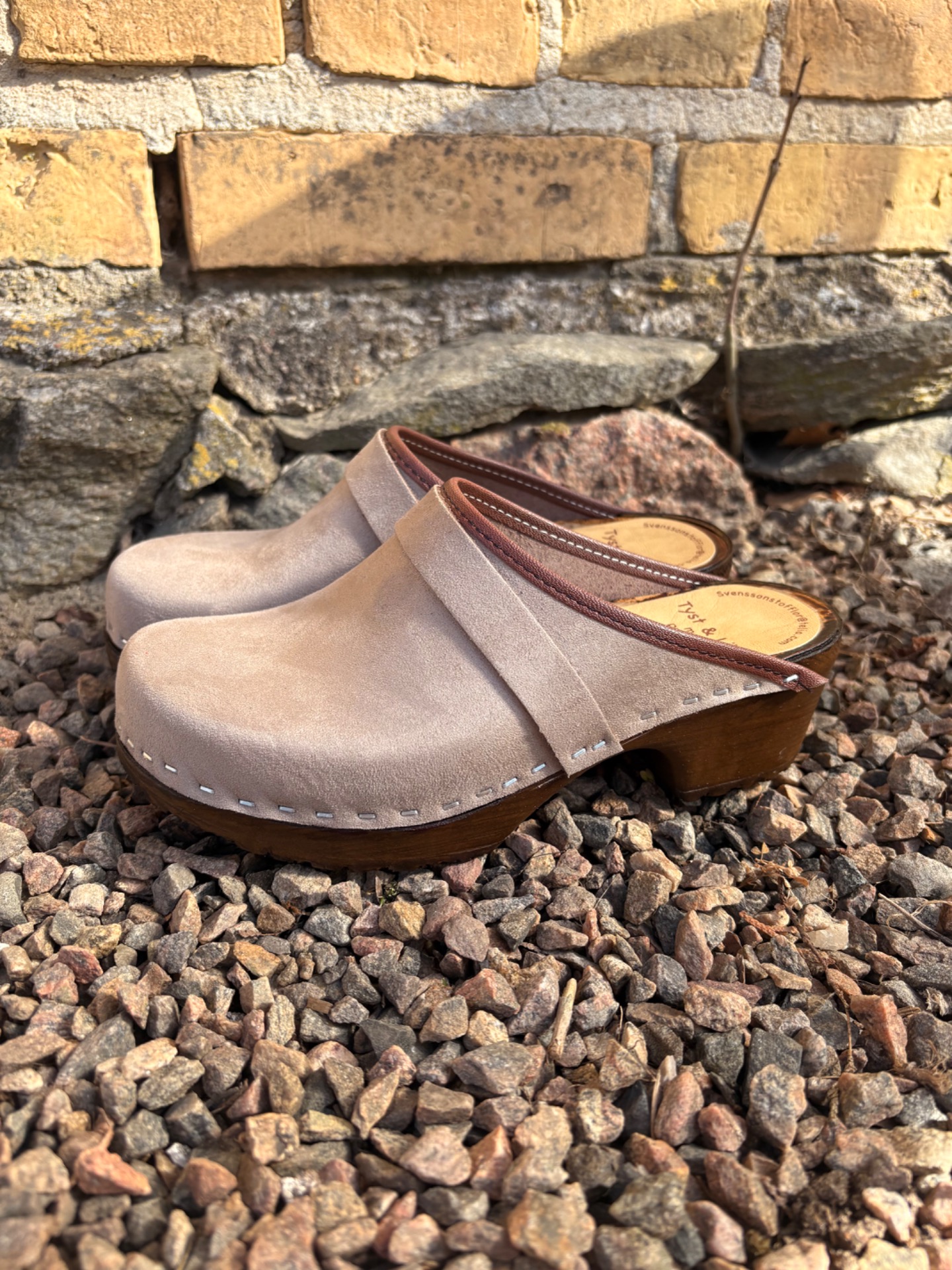 Här har vi Emil med en tyst och lätt botten i brunt. Väldigt snyggt till nubucklädret i nogatfärg.