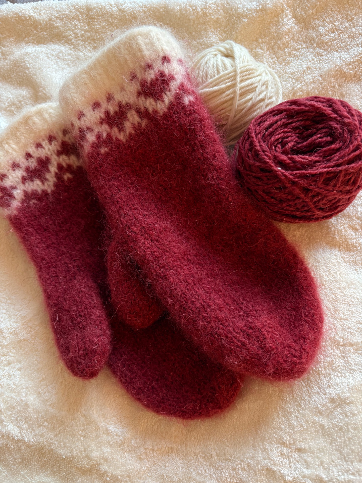 Handstickade ullvantar i 100% ullMörk rosa i frgen valkade/tovade i maskinVarma och mysigaRymlig modellpassar M/L Hand eller ulltvätt