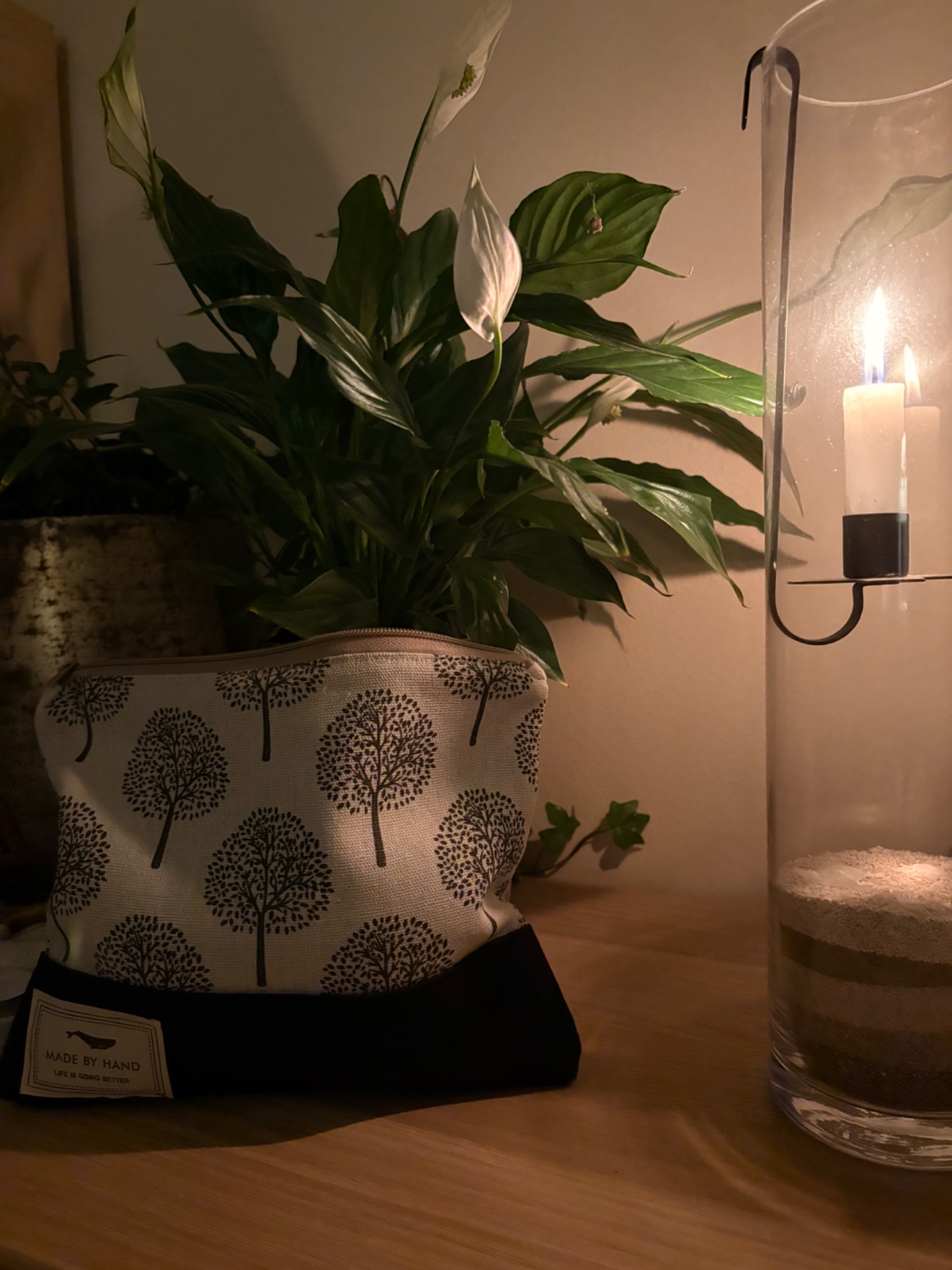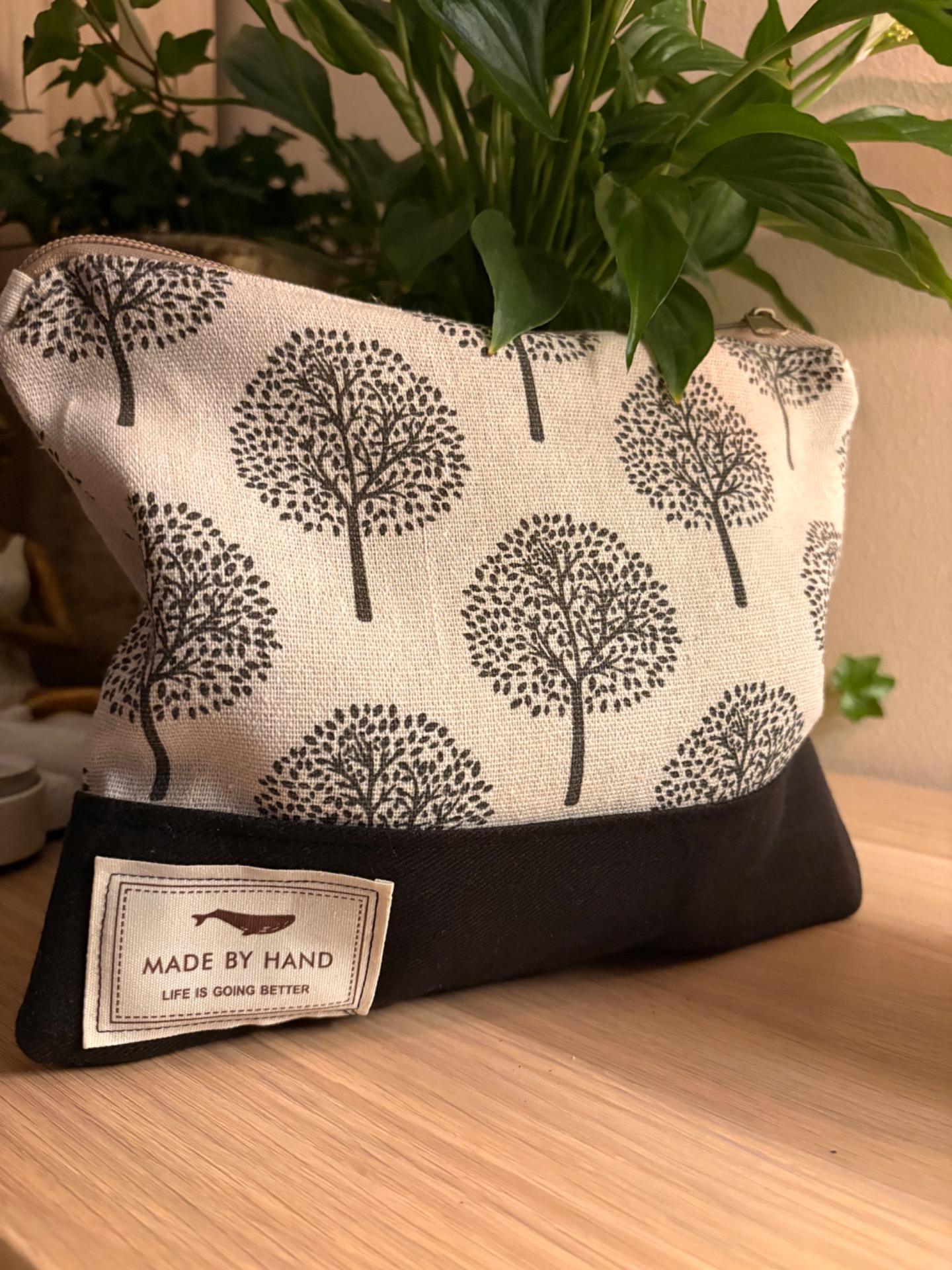 Handsydd väska med förstärkt bottenFodrad.Perfekt för småsaker i den större handväskan.Strl ca 20x25 cm